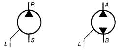 отверстие для входа рабочей жидкости в гидроустройство от источника давления; Т - сливное отверстие; S -