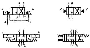 плит и устройств управления к гидролиниям, а также обозначения электромагнитов. Буквенные обозначения