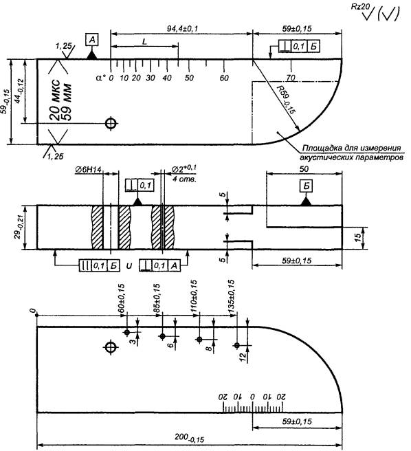ультразвуковых колебаний (2,5±0,2) МГц, температуре (20±5) °С и углах призмы β =