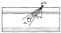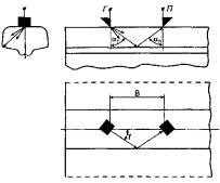 дефектоскопом с преобразователем частотой 2,5 МГц с углом призмы β =