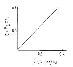 Результаты измерения оптической плотности рабочих растворов приведены в табл. 6.2. Калибровочная кривая, построенная по этим данным, представлена на рис. 6. Линейная зависимость оптической плотности от концентрации сохраняется в интервале от 0,0025 до 0,1250 мг/мл.
