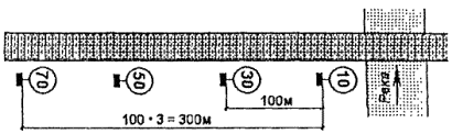 транспарант "Правила пользования переправой". Рис. 8.4. Схема снижения скорости движения на участке подхода к ледовой переправе. 8.7.5. Рейсовые автобусы, а также автомобили пожарной охраны, скорой медицинской помощи, милиции, ГИБДД, специальных и аварийных служб при выполнении ими неотложных служебных заданий пропускаются по переправе без очереди. 8.8. На каждой переправе эксплуатирующей организацией (мастером, начальником переправы) должны быть разработаны Правила пользования переправой, в которых с учетом местных условий должны быть полностью отражены требования настоящего раздела Инструкции. Плакаты с Правилами пользования переправой должны быть установлены перед шлагбаумами переправ, на пассажирских площадках у въездов на переправы. Также перед въездами на переправы должны быть установлены транспаранты, напоминающие о необходимости высадить пассажиров. 8.9. Контроль за весовыми параметрами перевозимых (пропускаемых) нагрузок должен осуществляться лицами обслуживающего персонала переправ в рамках их должностных обязанностей. Контроль ведется визуально по маркам автомобилей и наличию груза, а при необходимости - по документам (накладным и пр.), в которых указывается масса груза. Для контроля рекомендуется пользоваться таблицей приложения 8. 8.10. На подходах к ледовым переправам, на которых организован челночный пропуск транспортных средств, по условиям движения автомобилей следует выделять две характерные зоны. В первой зоне, находящейся в непосредственной близости к переправе, происходят накопление транспортных средств, ожидающих переправу, а также высадка и посадка пассажиров. Во второй зоне, на некотором удалении от переправы, происходит рассасывание плотного транспортного потока группы автомобилей, пропущенных через переправу в одном направлении. При этом движение автомобилей характеризуется неустойчивыми режимами: значительными колебаниями скоростей движения, ускорениями и торможением вплоть до остановок, большим количеством обгонов и высокой аварийностью, связанной с выездами автомобилей на встречную полосу и несоблюдением дистанции. 8.11. В первой зоне в непосредственной близости от въезда на переправу следует предусматривать устройство накопительных полос для автомобилей, ожидающих переправу, и посадочных полос для посадки и высадки пассажиров. 8.11.1. Протяженность накопительных полос зависит от интенсивности движения автомобилей и величины водной преграды. Длину полос следует назначать по табл. 8.1. Таблица 8.1.