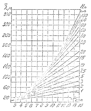 где верхняя часть графика служит для определения среднего периода зыби Рис. 4.2. График для определения периода и высоты волн зыби. 4.1.10. Период зыби получают путем следующих построений: из