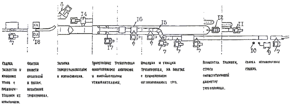 диаметром 159-530 мм; засыпка трубопровода - непрерывными методами для