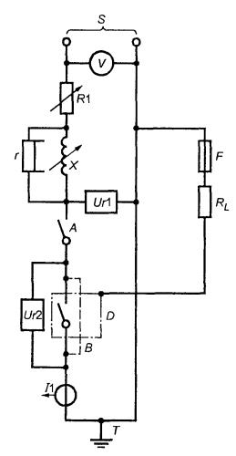 замыкающее устройство; R1 - регулируемое активное сопротивление, F - плавкий