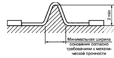 Условие: рассматриваемый путь охватывает ребро. Правило: воздушный зазор - кратчайшее расстояние по воздуху над вершиной ребра. Путь тока утечки проходит по контуру ребра. Пример 5