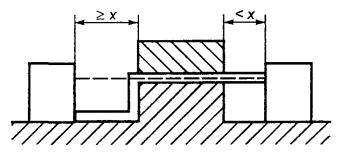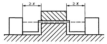 Условие: рассматриваемый путь охватывает нескрепленный стык с желобками шириной Хмм или более по обе стороны от него. Правило: воздушный зазор определяют по прямой. Путь тока утечки проходит по контуру желобков. Пример 7