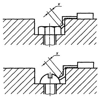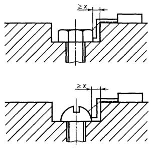 Условие: зазор между головкой винта и стенкой паза достаточно широкий, чтобы заслуживать внимание. Правило: Воздушный зазор и путь утечки соответствуют схеме. Пример 10