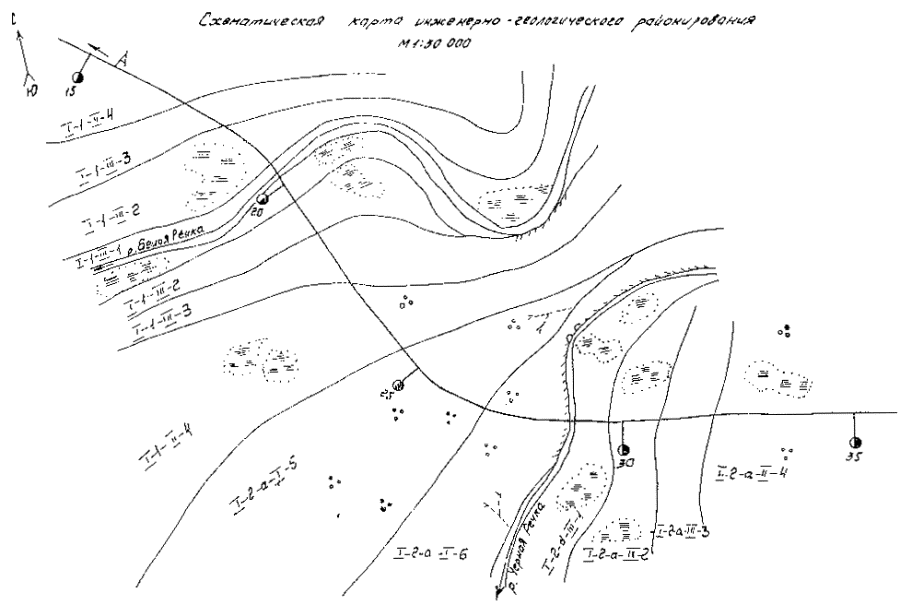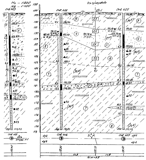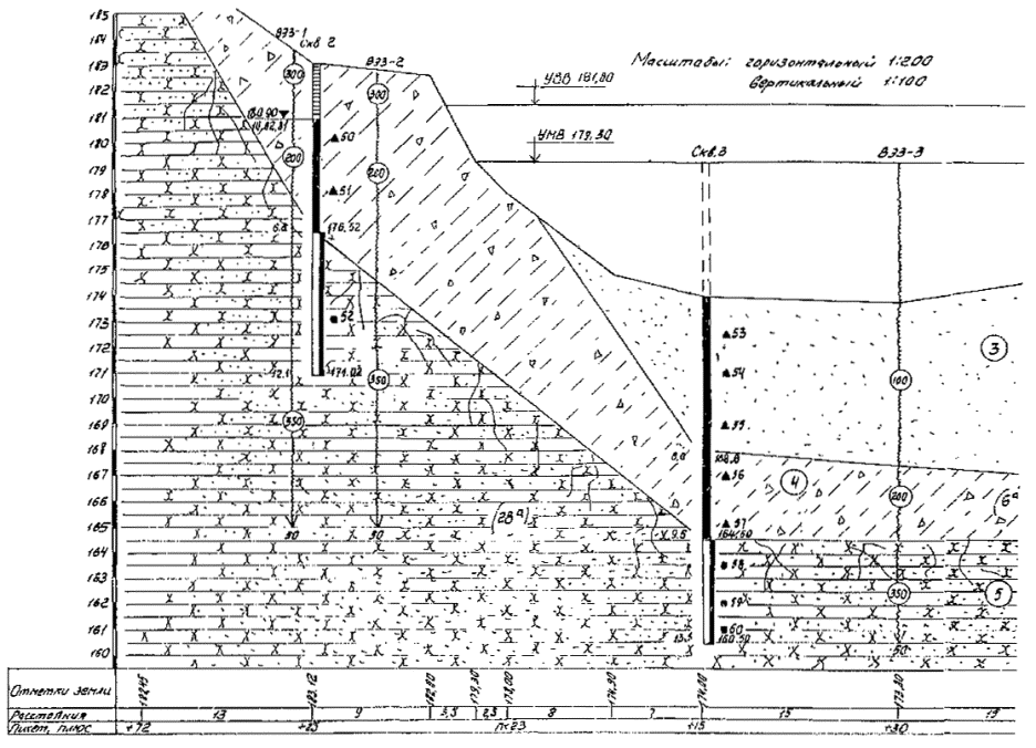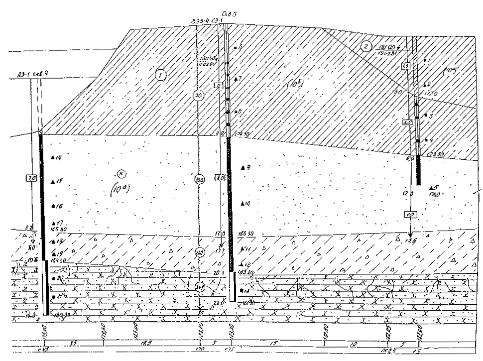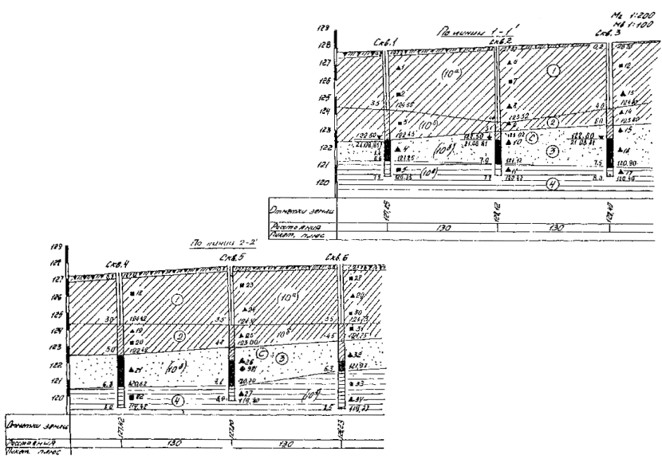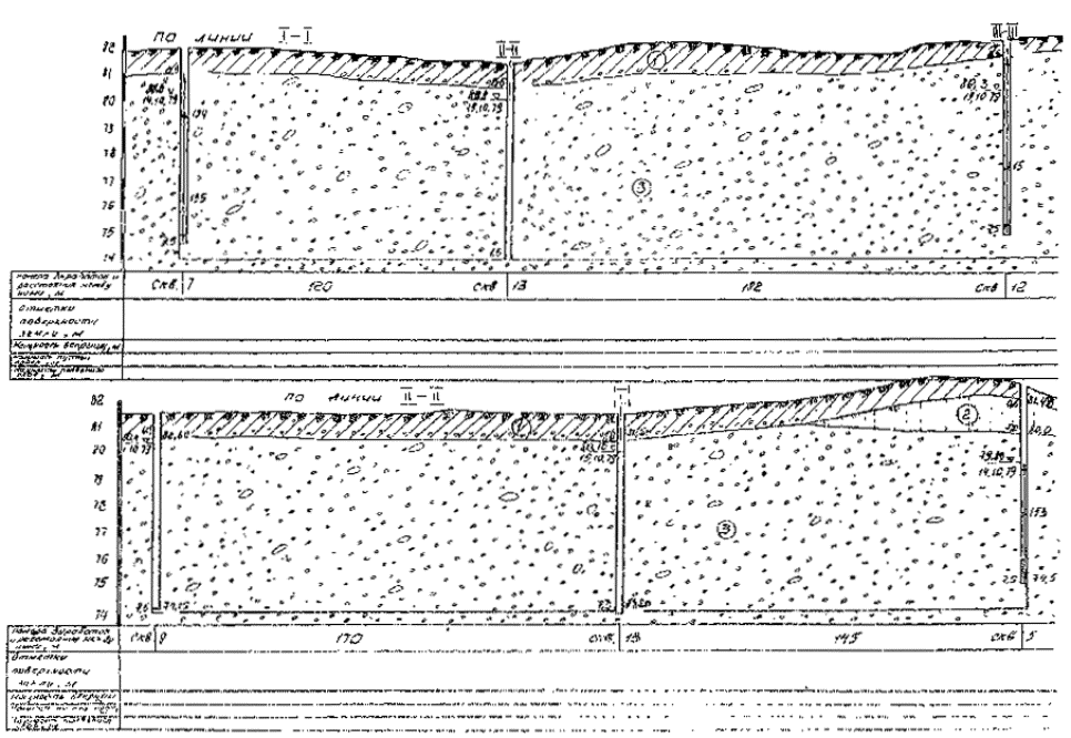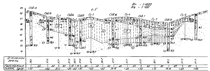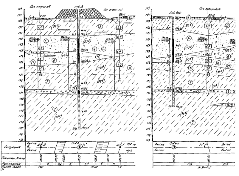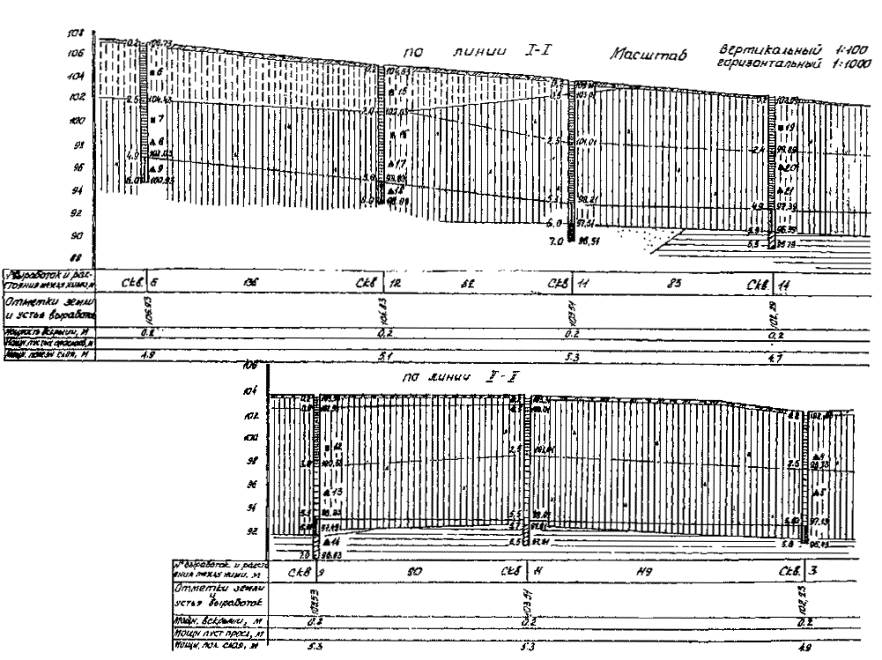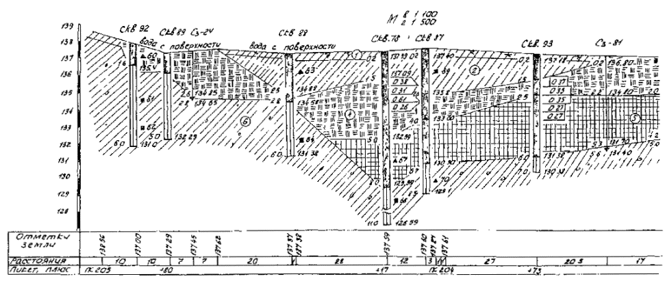 выдержанным слоем мощностью до 5 м. С глубины 2,5 м толща обводнена (6а)