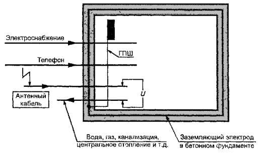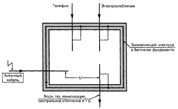 электрических потенциалов; 3) - металлоконструкция здания, например труба