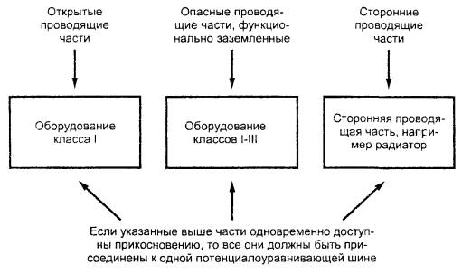 выравнивания электрических потенциалов в электроустановках, содержащих