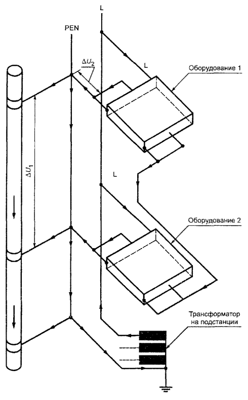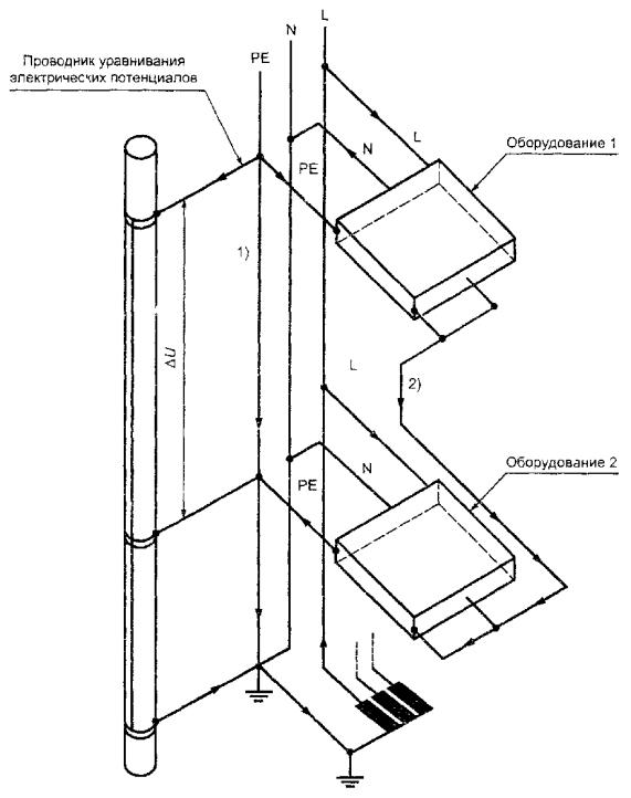 547.1.2 ГОСТ Р 50571.10. Примечание - При коротких однофазных замыканиях на заземленные проводящие части сверхток может вызывать избыточный ток в проводящих сигнальных соединениях между оборудованием. Если потенциалоуравнивающие