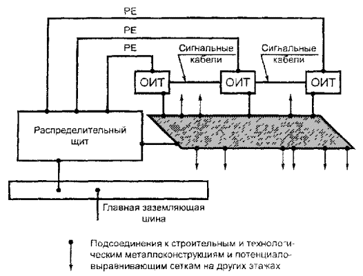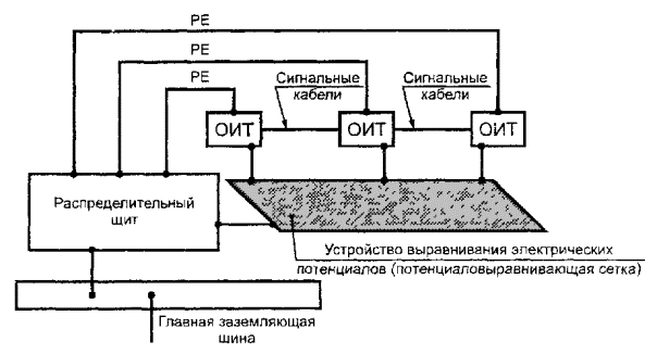 защиты подсоединялись на обоих концах к локальной потенциаловыравнивающей сетке