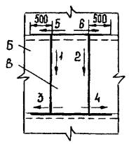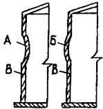 Последовательность сварки указана цифрами. Рис. 22. Дефект Одиночная вмятина А или выпучина Б в верхних поясах стенки В