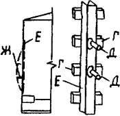 приваркой наружного горизонтального ребра жесткости Ж. Число ребер устанавливают по месту. Все натяжные приспособления