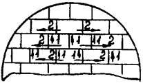 собой, начиная от центра кровли, сначала по коротким 1, а затем подлинным 2