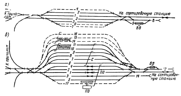 - путей в парках приема и отправления сортировочных