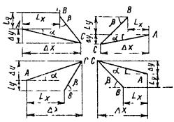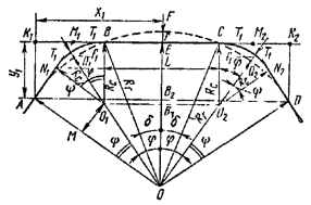 Элементы для разбивки главных точек кривых (табл. 16.42)