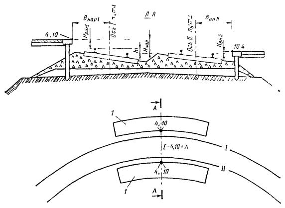 Уширение земляного полотна в кривых с наружной