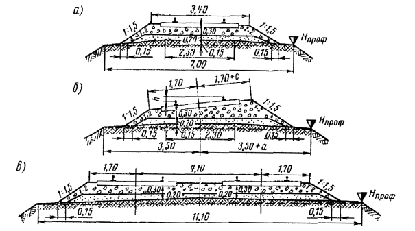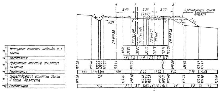 - поперечные верха земляного полотна (табл. 6.3)