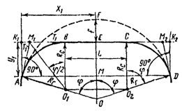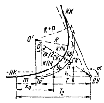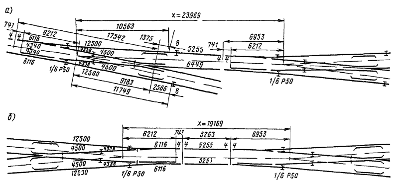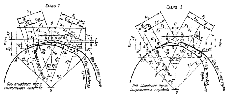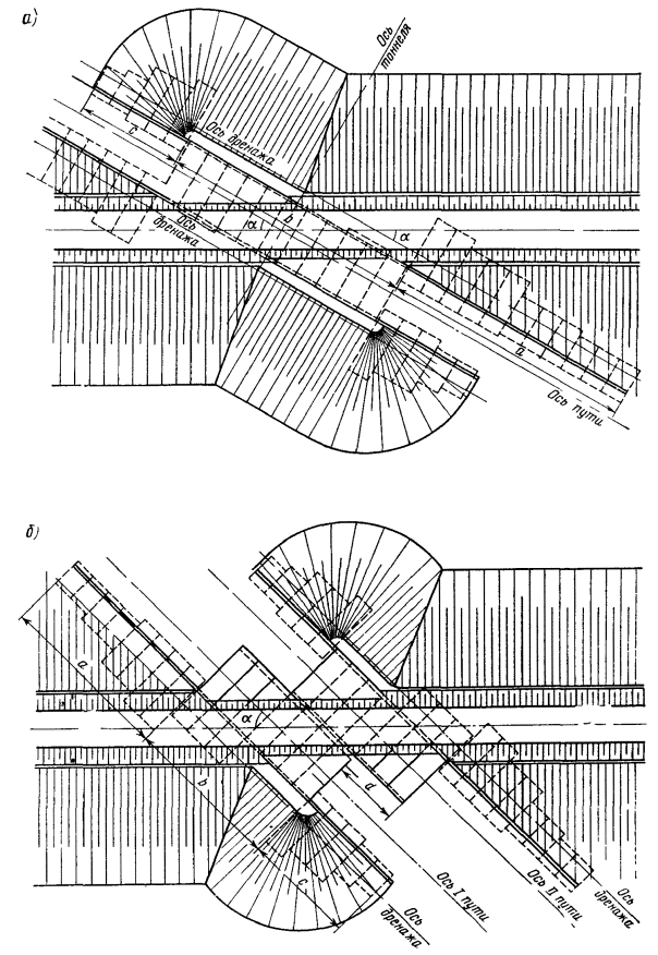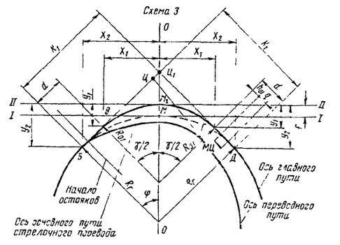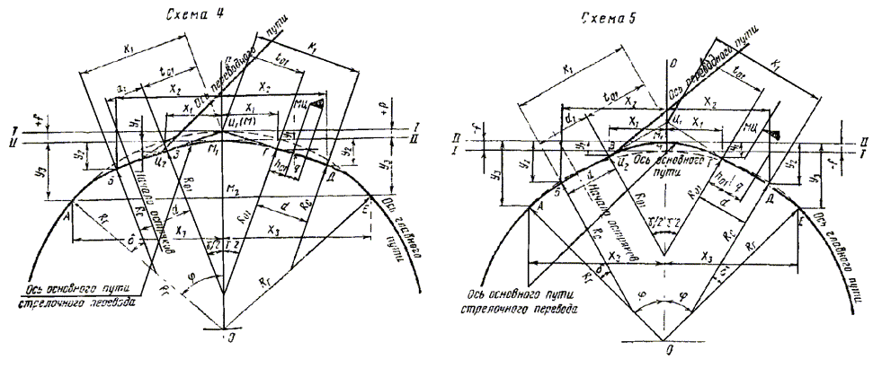 - круговых кривых при углах, кратных углам крестовин