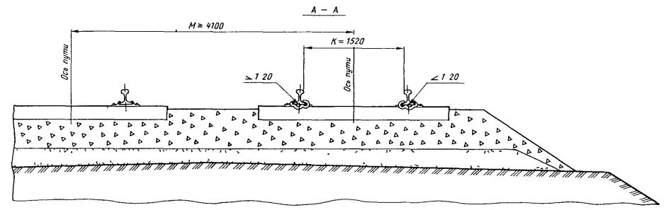 пути с деревянными шпалами в прямых участках: К - ширина колеи, М -