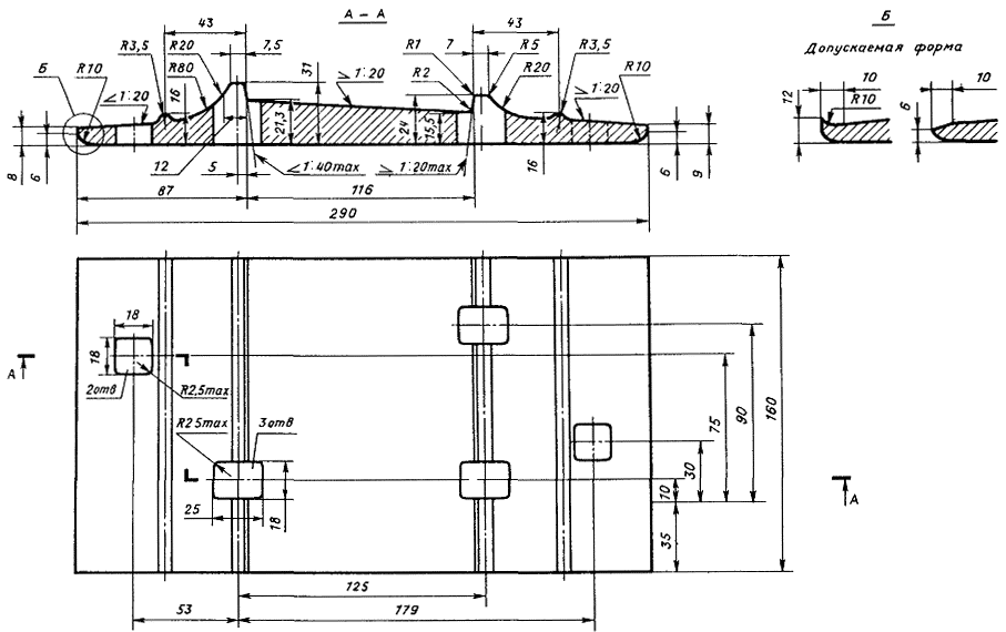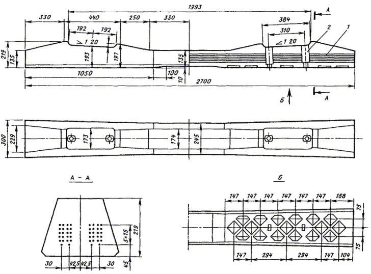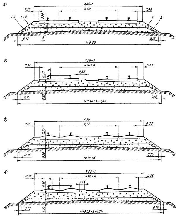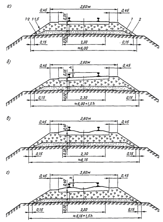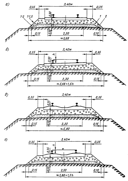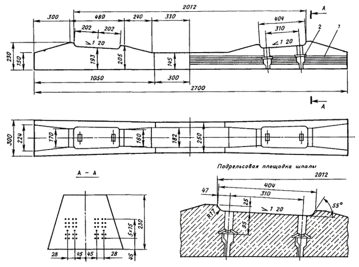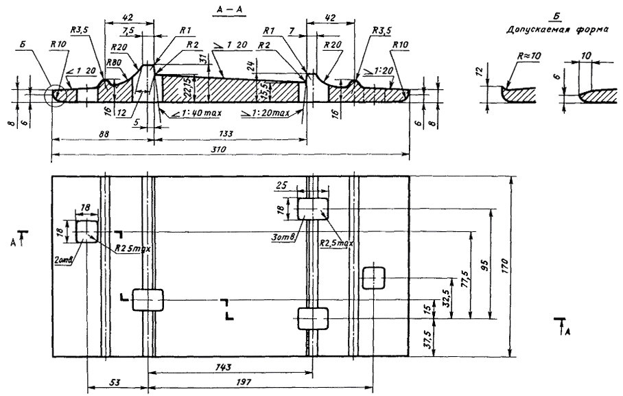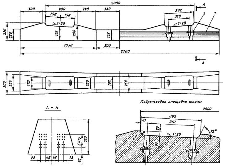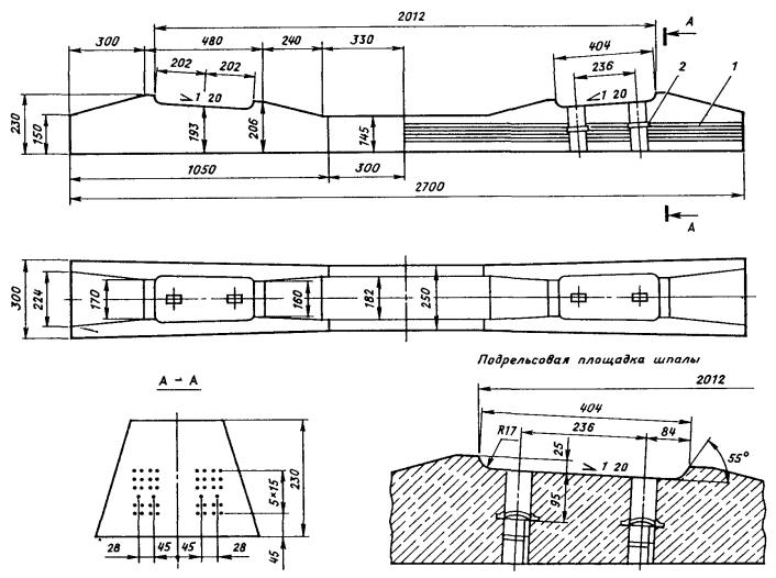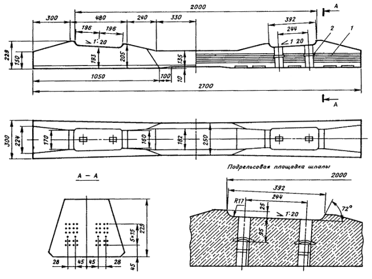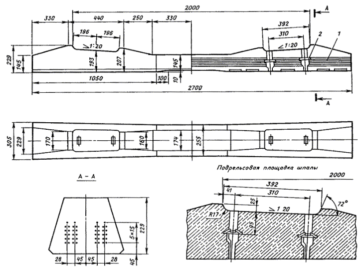 подуклонка 1:40. Шпалы применяются деревянные и железобетонные. Число
