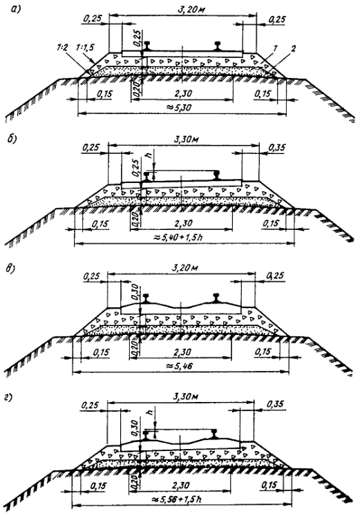 рельсовой колеи в кривых; h - возвышение наружного рельса;