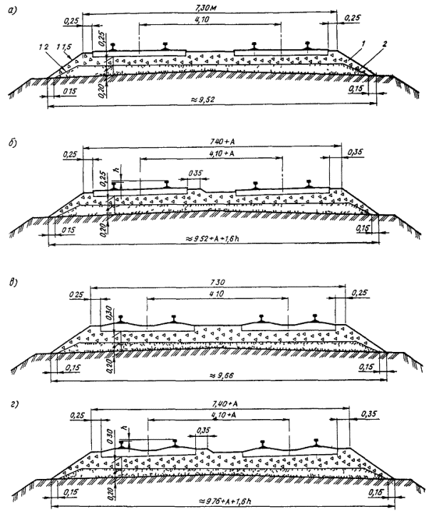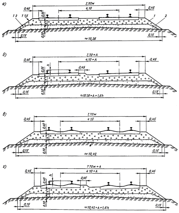 ширина междупутья; А - уширение междупутья в кривых; а - уширение
