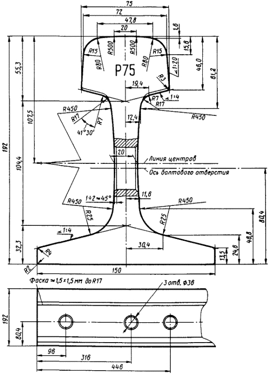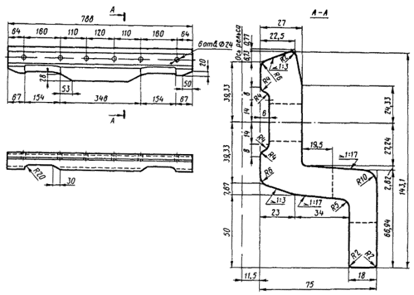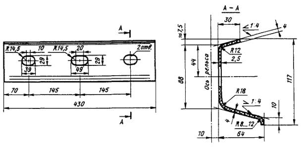 переходная Р75 - Р65 (правая) Черт. 117. Накладка