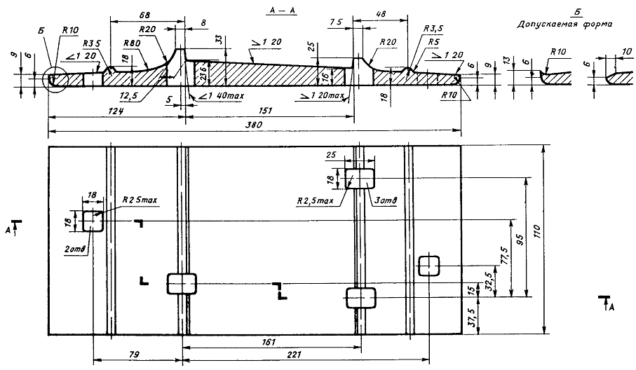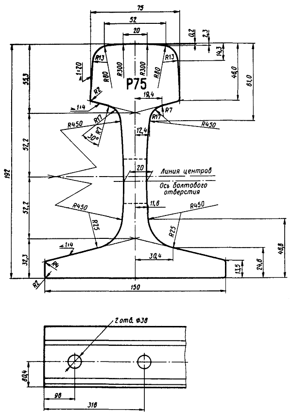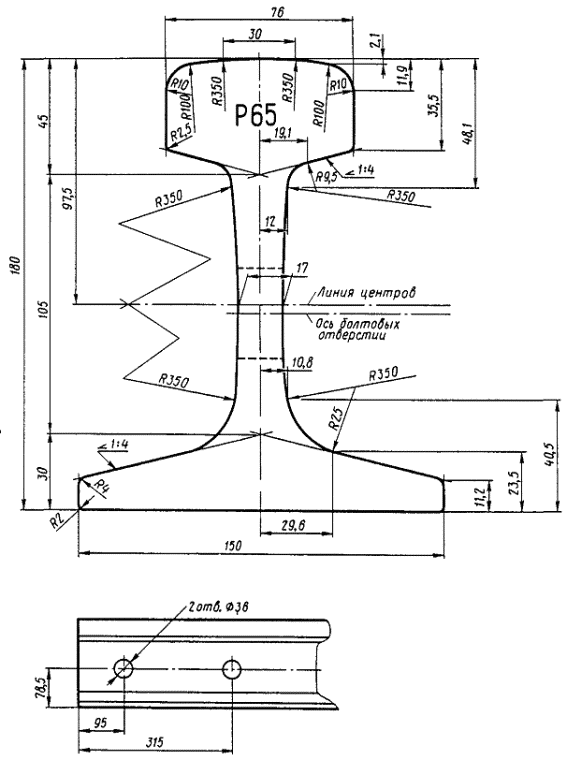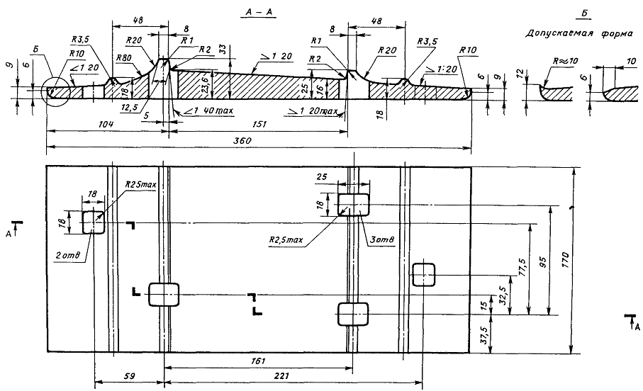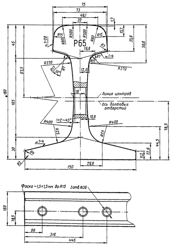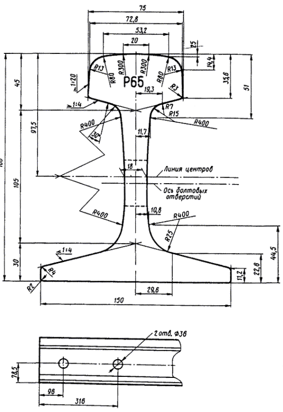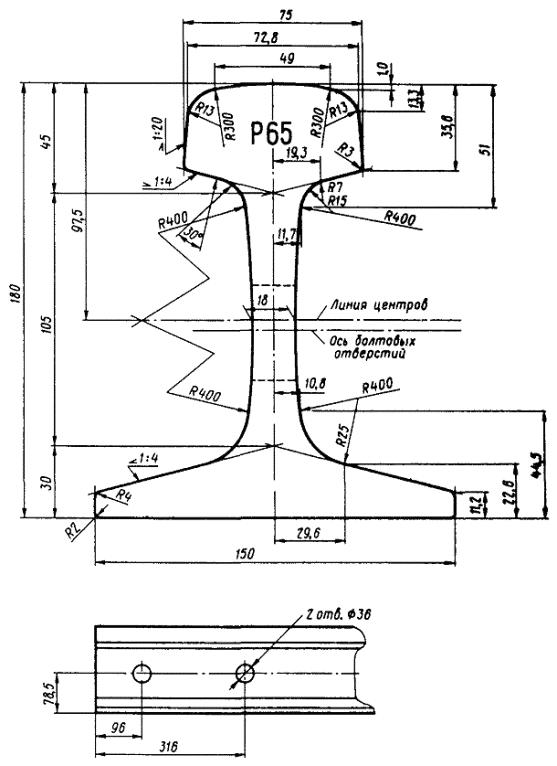 шпал. У рельсов типов Р75 и Р65, уложенных в путь до 1963 г., допускается
