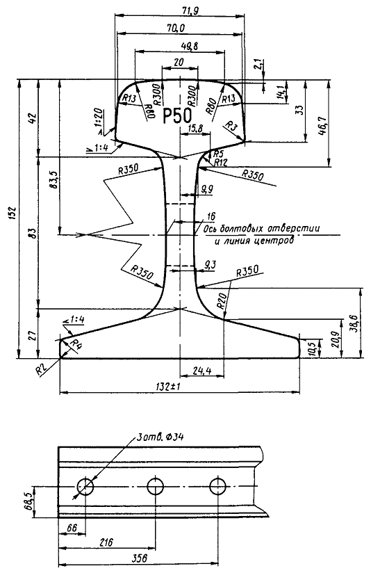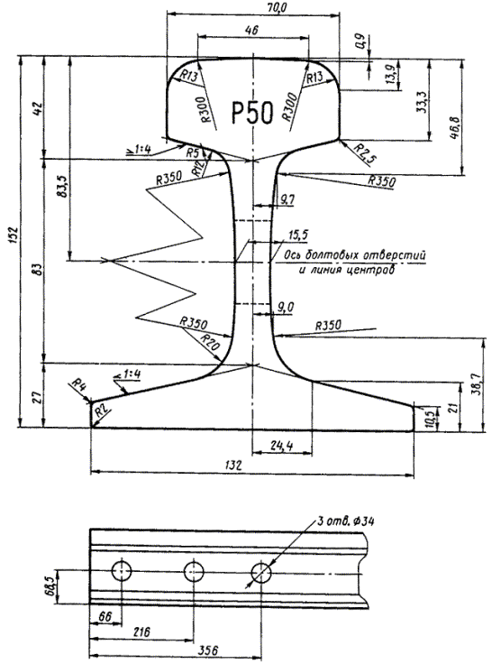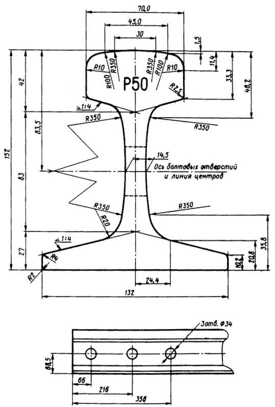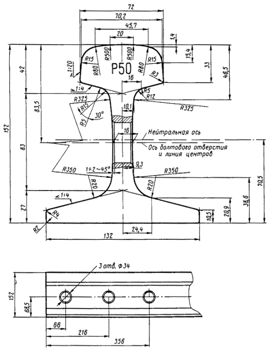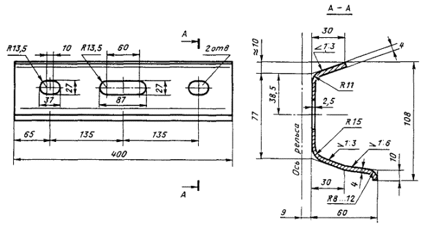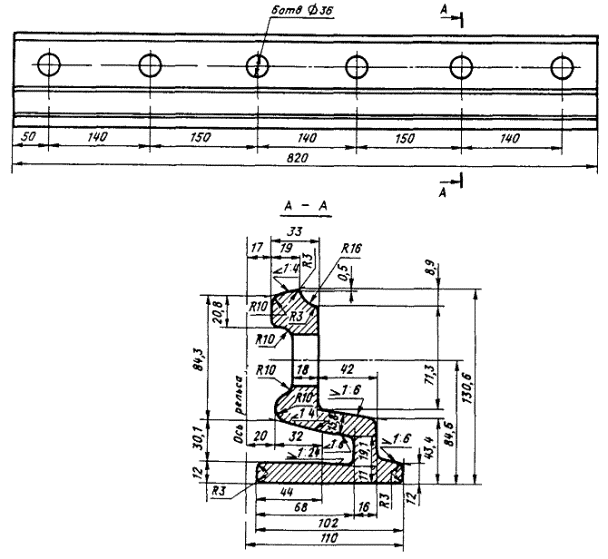 рельсов Р50 - Р50 Черт. 125. Накладка