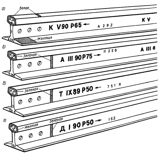 образом. На прямых участках пути и на кривых радиусом более 1200 м рельсы типов