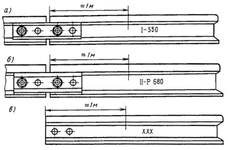 пути, где стыкуются разнотипные рельсы, а также однотипные рельсы, имеющие
