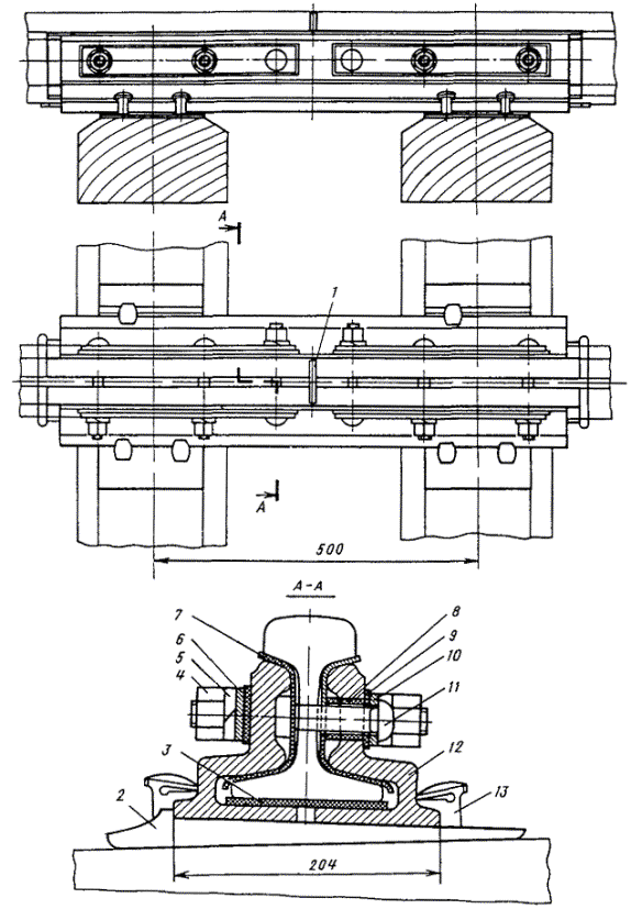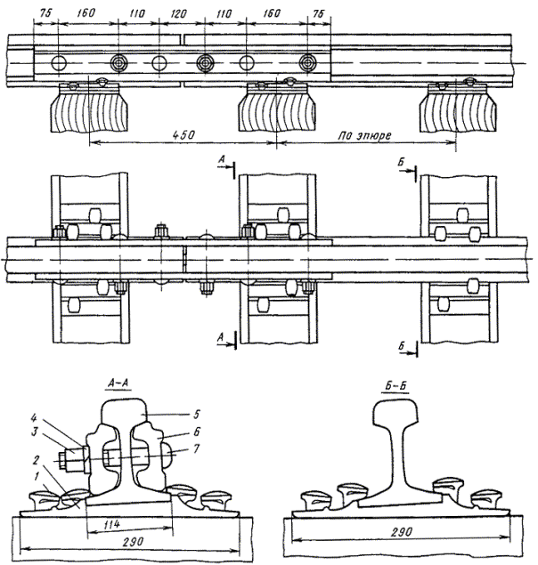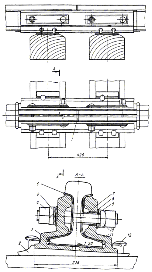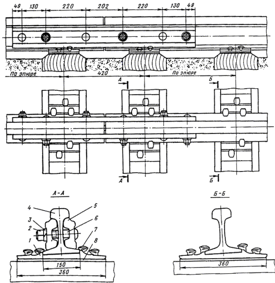 Между плетьми укладываются три-четыре звена уравнительных рельсов по 12,5 м. Тип скреплений должен соответствовать типу рельсов.