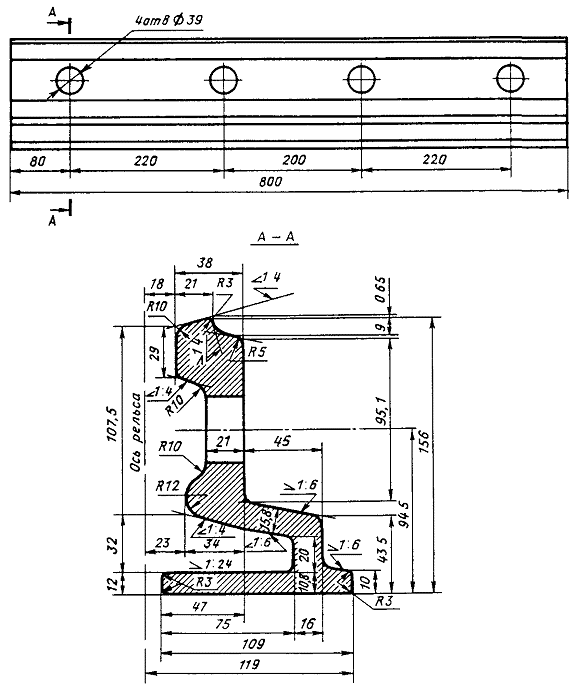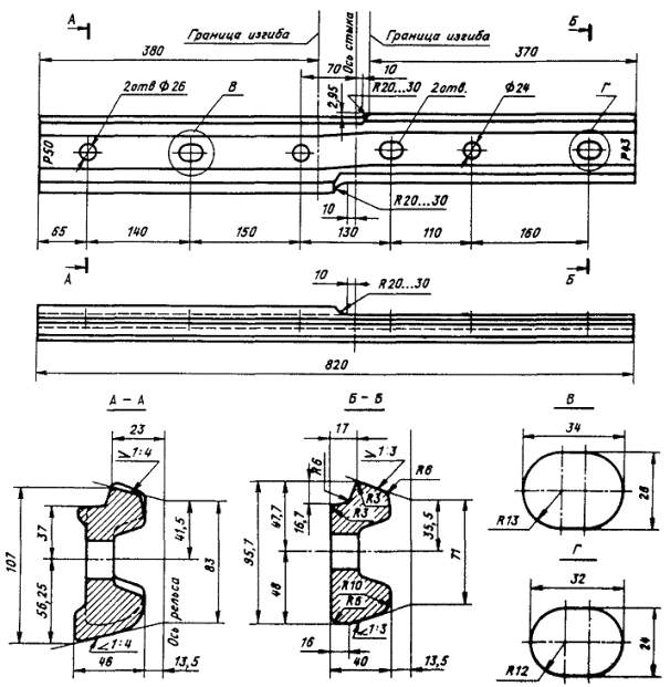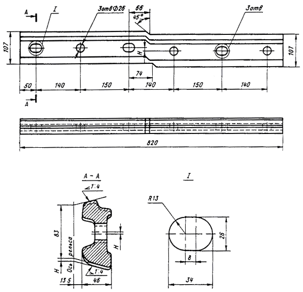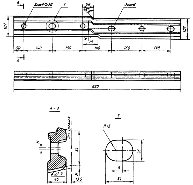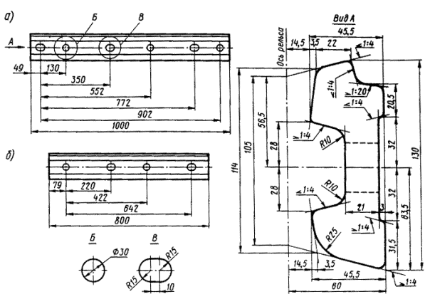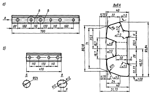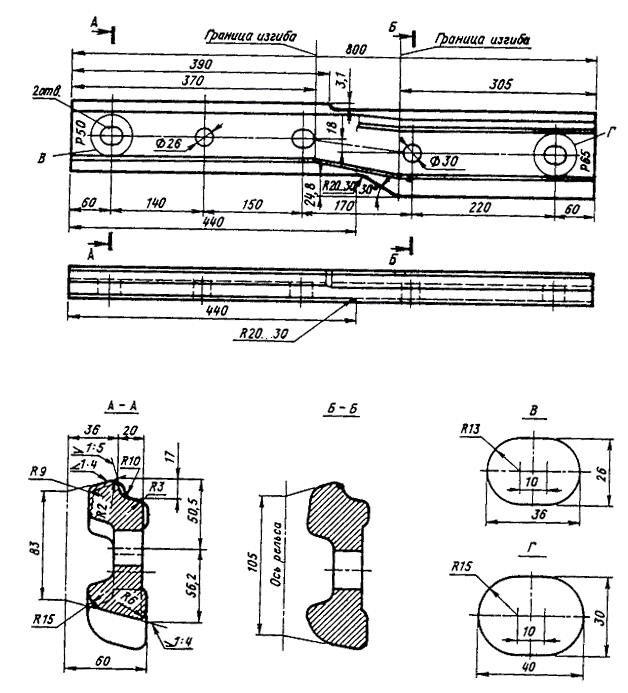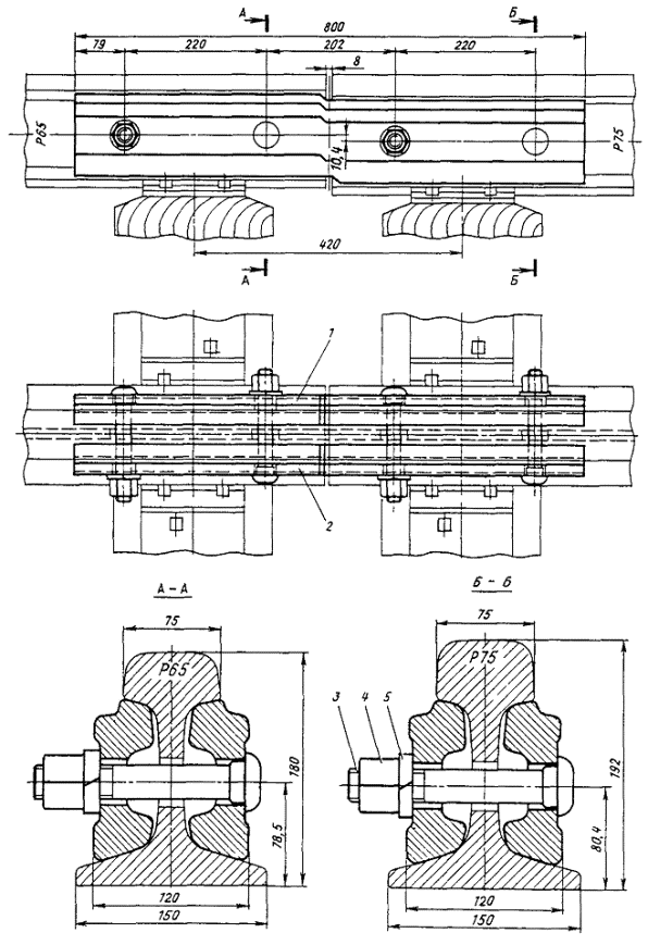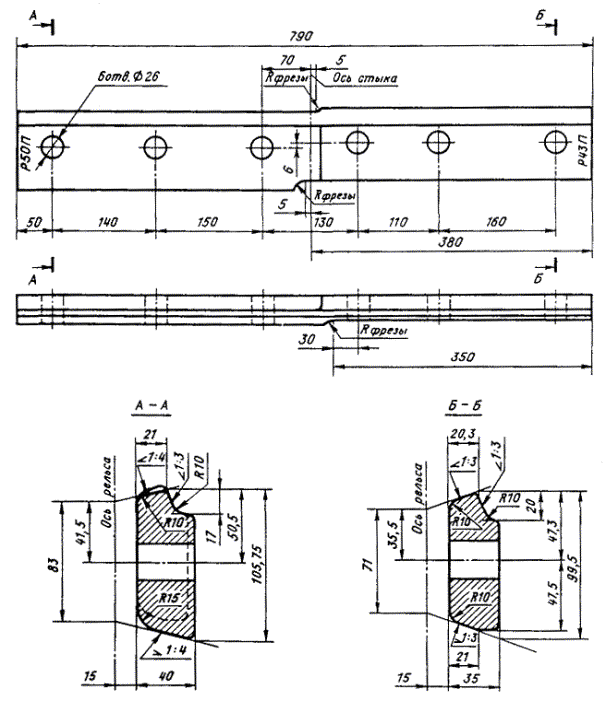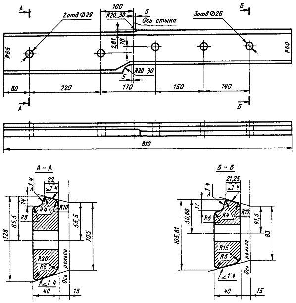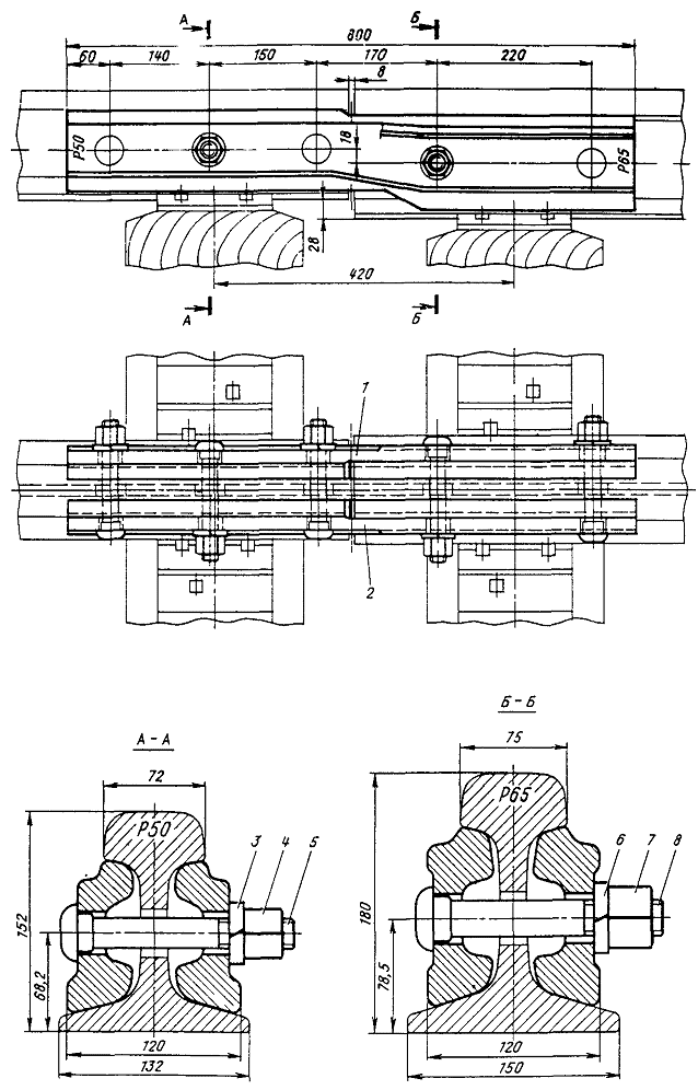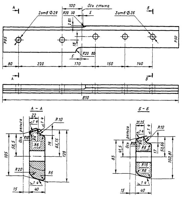 Черт. 118. Переходный стык рельсов Р65 - Р50 Черт. 119. Накладка