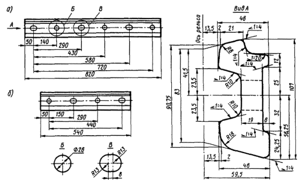 принимается большее из полученных по формулам (1) и (3). Рельсы как на прямых, так и на кривых участках пути