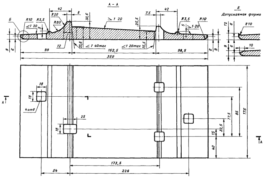 должны иметь подуклонку 1:20 (наклон внутрь колеи) относительно поверхности