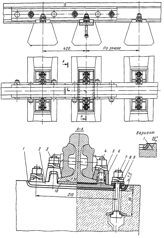 1Клемма АС10 устанавливается с наружной стороны колеи,