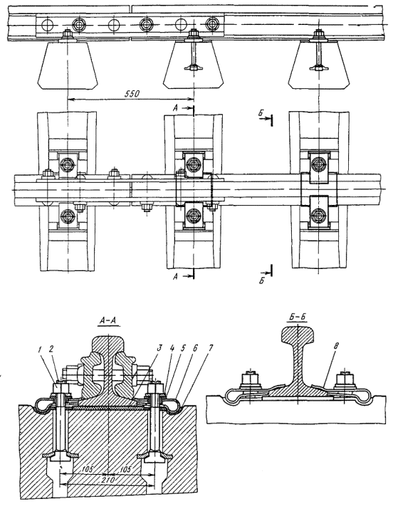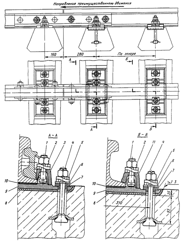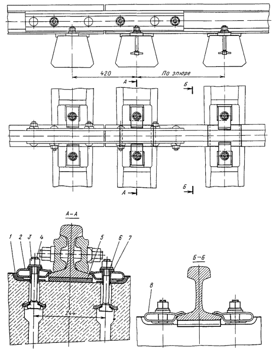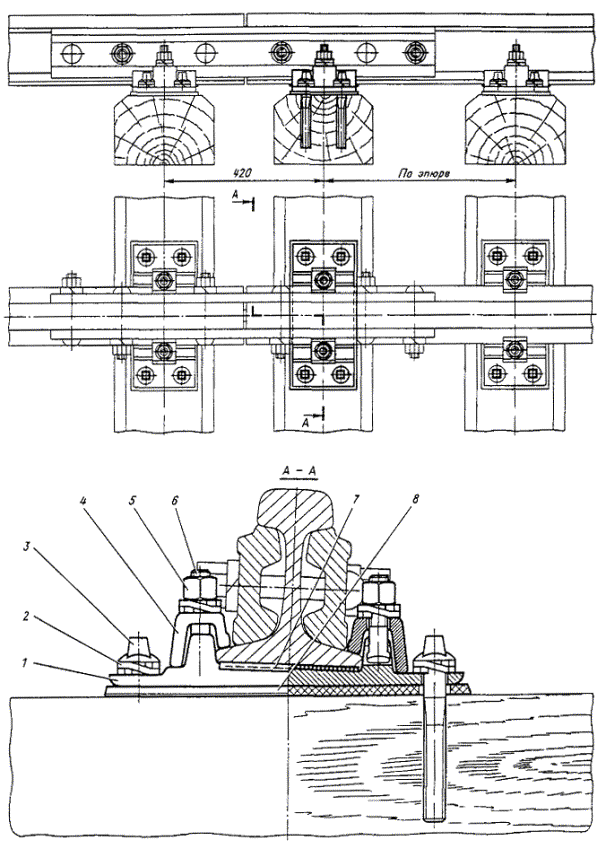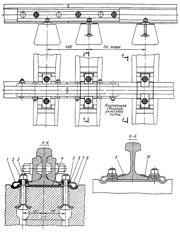 Р75, Р65, Р50 и Р43 прикрепляются на каждом конце шпалы, кроме стыковых,