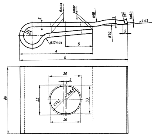 переходная Р50 - Р43 из полосы (левая) Черт. 133. Планка стопорная