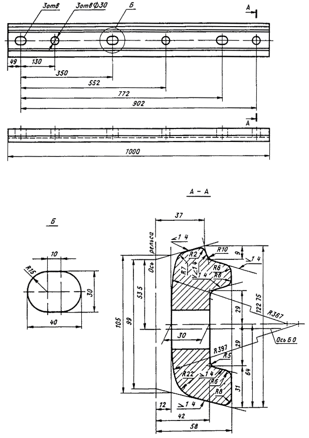 вертикальному износу головки рельса) Черт. 126. Накладка