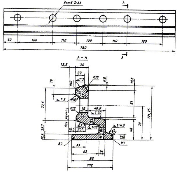 переходная Р65 - Р50 (правая) Черт. 120. Накладка