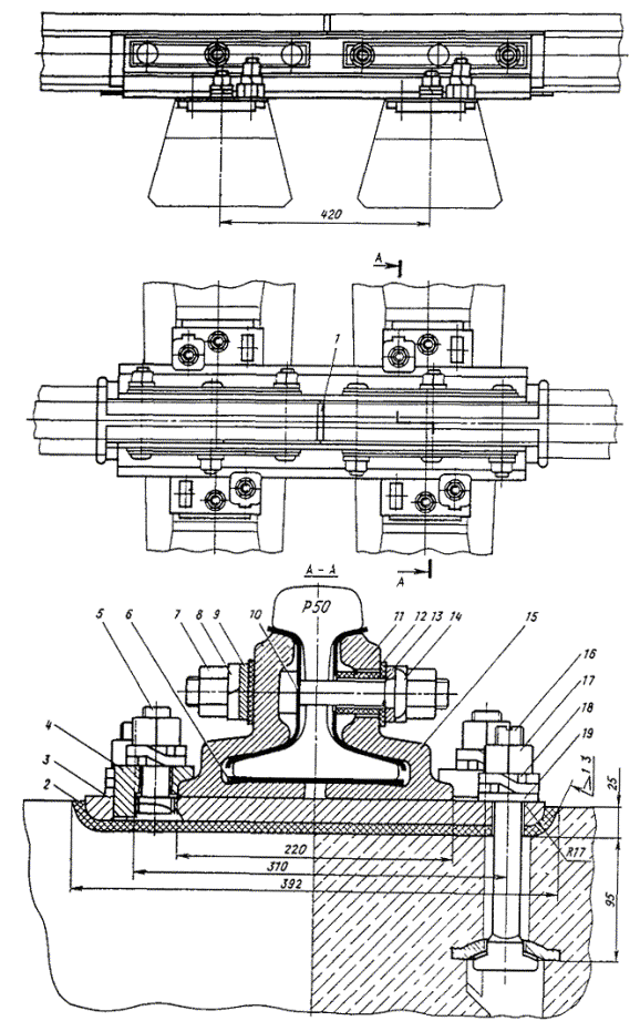 различный вертикальный износ (черт. 115 - 134, табл. 28 - 33). Черт. 115. Переходный стык