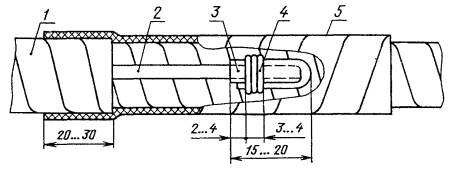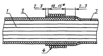 электроизоляционная лента; 4 - бандаж из ниток * С увеличением диаметра жгута ширину бандажа увеличивают в указанных пределах. Рисунок 15