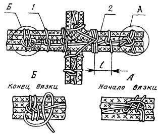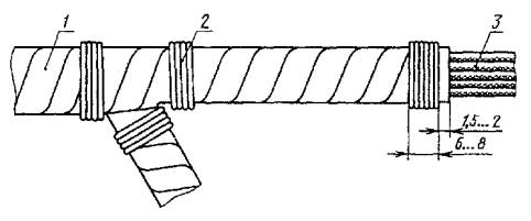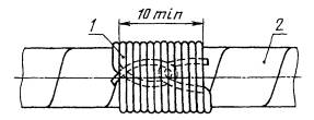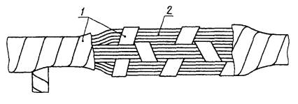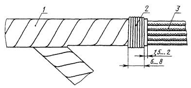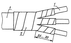 1 - электроизоляционная трубка; 2 - электроизоляционная лента Рисунок 19 1 - электроизоляционная лента, 2 - бандаж из ниток, 3 -