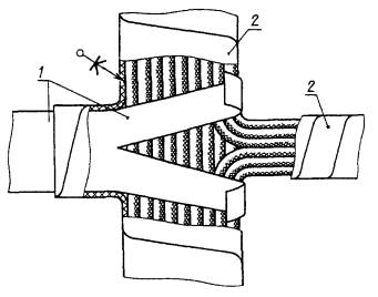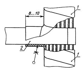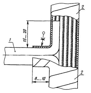 1 - электроизоляционная трубка; 2 - электроизоляционная лента Рисунок 18