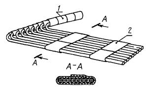 1 - жгут; 2 - прокладка из электроизоляционного материала; 3 -