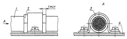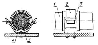 1 - жгут; 2 - лента из алюминия; 3 - скоба; 4 - панель, шасси; 5 - прокладка (обмотка) из электроизоляционного материала Рисунок 26