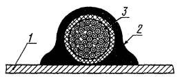 1 - жгут; 2 - прокладка (обмотка) из электроизоляционного материала; 3 - лента из алюминия; 4 - панель, шасси; 5 - скоба Рисунок 27 1 - панель; 2 - компаунд, 3 - жгут Рисунок 28 ПРИЛОЖЕНИЕ А